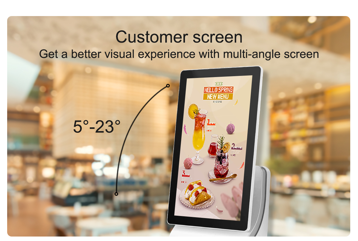 Adjustable Touch Screen Angle easy to adjust display angle for customer best view position , Flexible Angle Adjustment